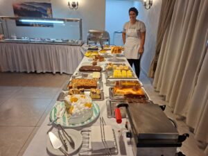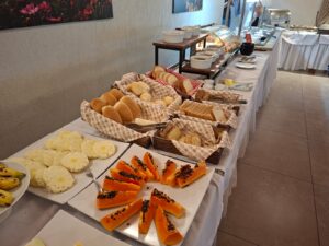 Um dos grandes destaques do San Lucas é o café da manhã, considerado um dos pontos altos da hospedagem. Servido diariamente com variedade e produtos frescos, o desjejum reúne pães, bolos, frutas, frios e bebidas, atendendo aos mais diversos gostos e preferências dos visitantes.