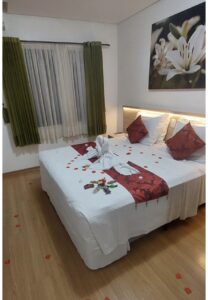 O hotel dispõe de acomodações amplas, bem equipadas e climatizadas, garantindo comodidade em todas as épocas do ano. Os ambientes são organizados, limpos e pensados para proporcionar bem-estar, seja para casais, famílias ou grupos de amigos.
