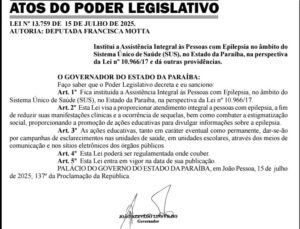 Governador sanciona lei de Francisca Motta que garante assistência integral a pessoas com epilepsia na Paraíba