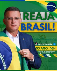 O deputado estadual, Sargento Neto (PL), celebrou o sucesso da manifestação realizada neste domingo (3) no Busto de Tamandaré, em João Pessoa, para pedir ‘Fora Lula’ e Fora ‘Moraes’.
